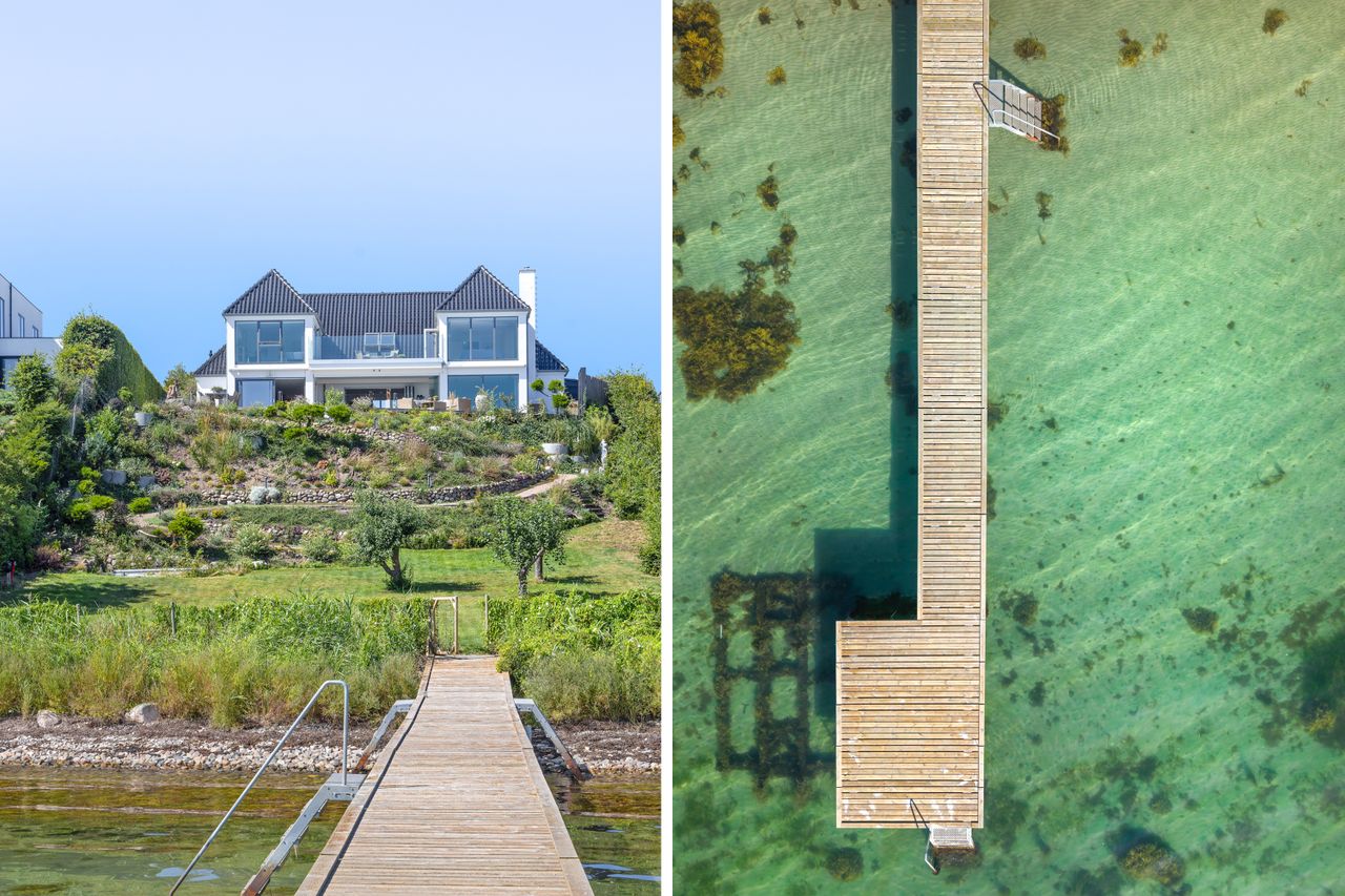Herskabelig hall med smukt trappeforløb til 1. salen. Et nyere køkken/alrum i nordisk stil med kvalitets-hvidevarer og en stor vinafdeling, og som en tråd igennem huset, er alt med fokus på udsigten. Her er et skydedørsparti med udgang til et pragtfuldt, stort trædæk og den smukke skrånende grund, som er ekstra smukt beplantet, og med hyggelig sti som fører en ned til vandet og sin egen private badebro. Eksklusiv overdækket “sommerstue”, hvor hele glaspartiet mod vandet og terrassen nemt kan køres til side. Der er åbent til skøn tv-/spisestue til mange gæster og plads til de store sofagrupper, og alle kan nyde varmen og ilden i pejsen. Stuen kan nemt opdeles hvis dette er et ønske. Hall med gæstetoilet samt garderobe. Bryggers/grovkøkken med egen indgang. 1. salen er ligeså imponerende som stueplanet. I værelser mod vandet er der vinduespartier fra gulv til loftet, så udsigten er helt enestående, der er også udgang til en super lækker terrasse, hvor man både er helt privat og kan sove ude de varme sommernætter. 3 værelser – det ene med walk-in – samt to badeværelser, hvoraf det ene er ekstra stort og har spa.