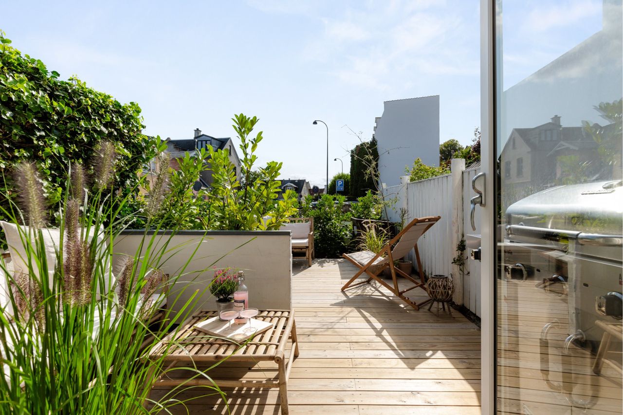 Fra det smukke alrum åbner du direkte op til en stor, nyetableret træterrasse, der vender perfekt for