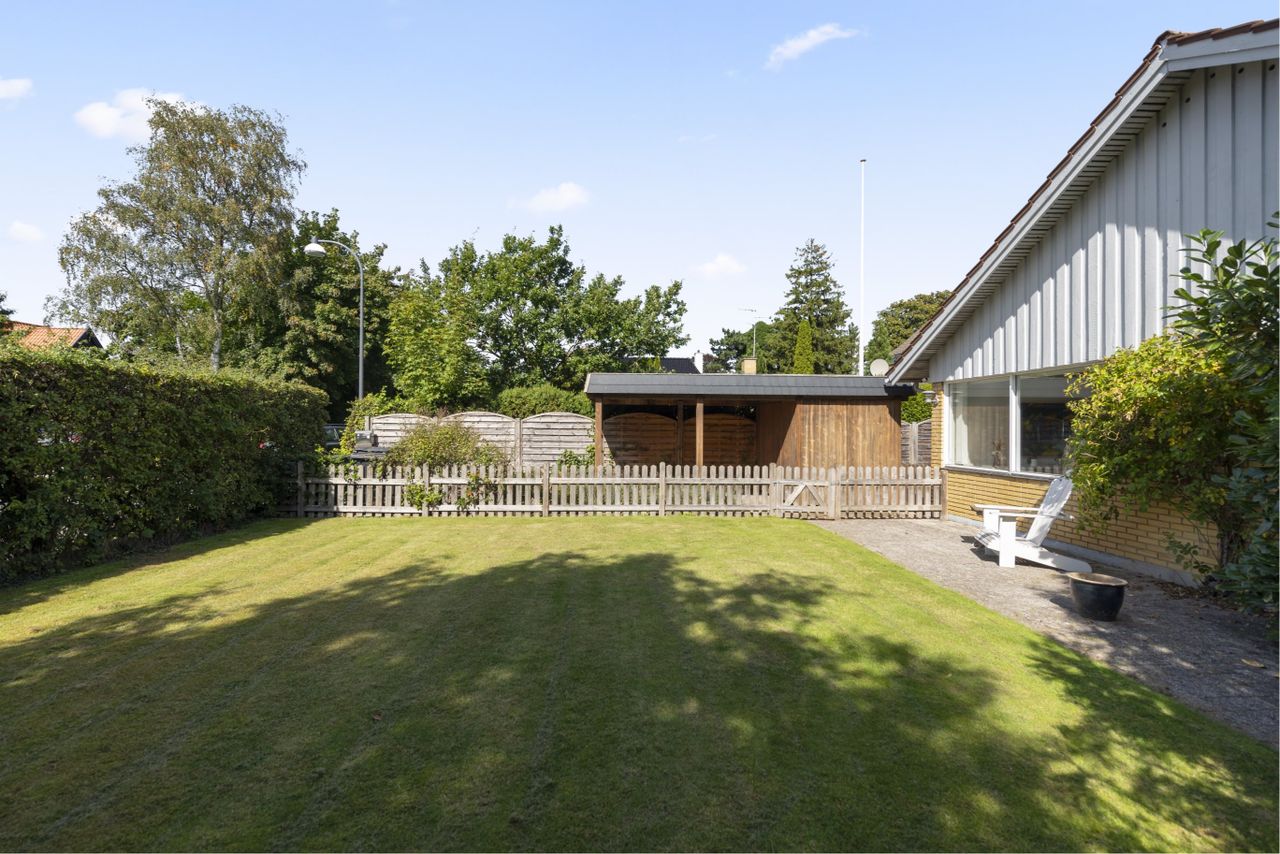 stemning og ved indkørslen er der en carport til bilen og udhus til cykler og haveredskaber.
